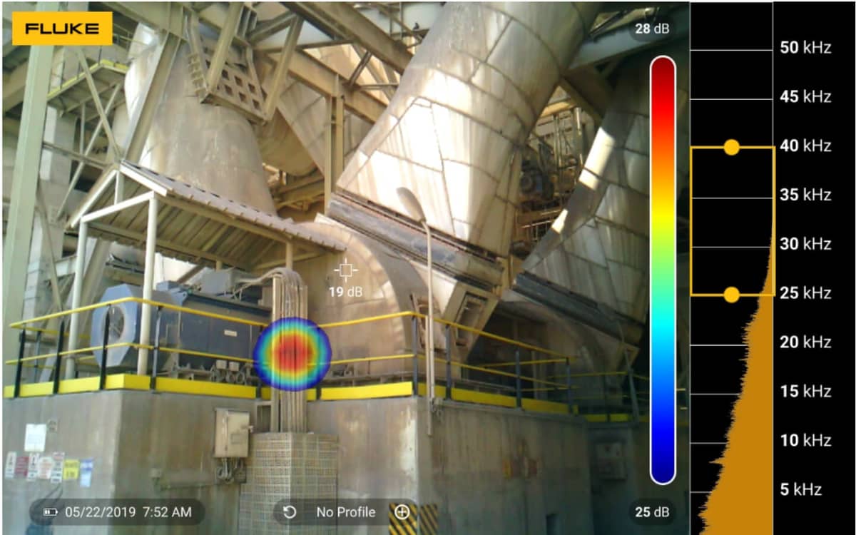 Mit den Schallkameras Fluke ii905 und ii915 ist es möglich, vollständige Inspektionen zur Lecksuche während des laufenden Betriebs durchzuführen. Die in das Gerät eingebaute Anordnung empfindlicher Mikrofone wurde so konzipiert, dass diese die Frequenzen von Druckluftlecks isolieren und alle aus der Fertigung kommenden Nebengeräusche herausfiltern kann. Mit den Schallkameras Fluke ii905 und ii915 in Ihrem Gerätepark für die Instandhaltung gehören Geräteausfallzeiten der Vergangenheit an.